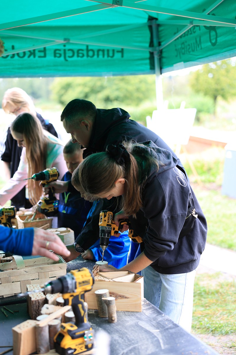 Kulminacją tych wielotygodniowych przygotowań był wielki event Somersby, który odbył się 20 lipca 2024 roku w Ogrodzie Botanicznym Geonatura Kielce. Od rana rozstawialiśmy stoiska, szykując się na spotkanie z gośćmi, których, jak się okazało, przybyło ponad tysiąc. Pod naszym okiem uczestnicy tworzyli własne miniogródki z lawendy, szałwii i tymianku, by zabrać kawałek owadziego raju na swój balkon. Zaskoczyła nas liczba osób z wrodzoną smykałką do majsterkowania – wkrętarki i opalarki szły w ruch, gdy wspólnie budowaliśmy domki dla pożytecznych dzikich zapylaczy.