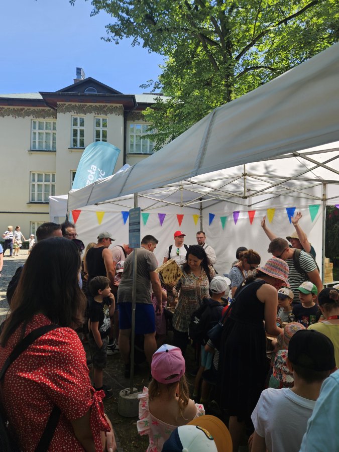 Każdy, kto interesuje się polską kulturą i tradycją, zna Państwowy Zespół Ludowy Pieśni i Tańca „Mazowsze” im. Tadeusza Sygietyńskiego. Znamy i my. Z wielką więc przyjemnością pojawiliśmy się na VII Rodzinnym Pikniku z zespołem Mazowsze, w charakterze nie tylko biernych uczestników, ale edukatorów. Impreza odbywała się 14 i 15 czerwca 2025 r. w Karolinie, czyli siedzibie Zespołu. Działo się bardzo dużo, a setki odwiedzających mogły przebierać między atrakcjami. Koncerty, pokazy, animacje, wystawy i targi regionalnych wyrobów i przysmaków, spotkania z artystami i twórcami. To był naprawdę szeroki przekrój ciekawych miejsc i stoisk, w rytm ludowych przyśpiewek i tańców.