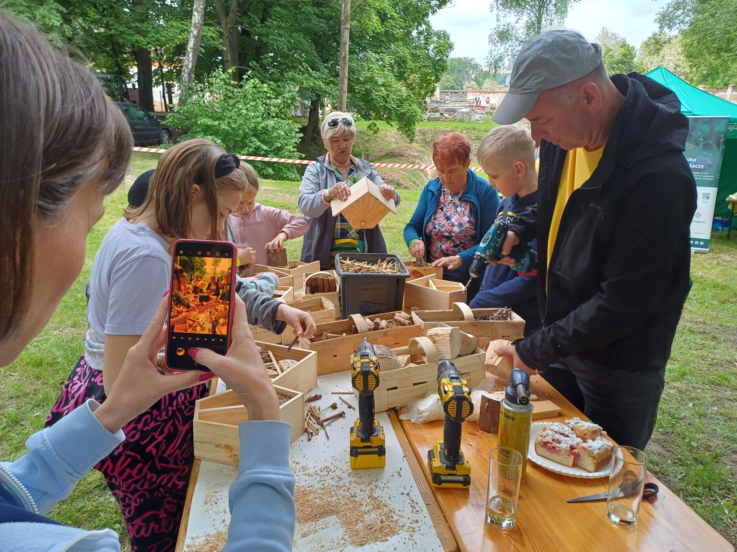 Skoro o gruncie mowa, to w Sierpcu zapoznaliśmy się z nim bliżej – wraz z uczestnikami posadziliśmy 400 roślin miododajnych, z których zapylacze będą miały wartościowe pożytki. Również wspólnie przygotowaliśmy dla nich nowe siedliska – duże domki, wypełnione pomocami gniazdowymi.